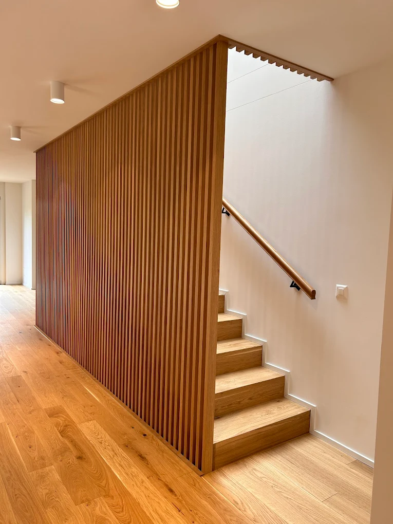 Escaliers design, cuisines épurées, charpentes complexes, rénovation de boiseries anciennes, portes sur mesure, ou encore mobilier personnalisé : chaque projet est unique et conçu en étroite collaboration avec le client ou son architecte.