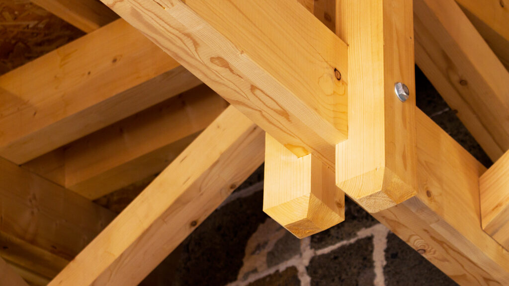 Petite charpente décorative et poutres apparentes